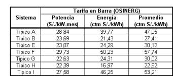 4. Tarifas en Barra en Subestaciones Base