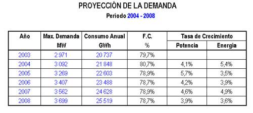 del Decreto Supremo N° 010-2004-EM. La proyección de dicha demanda