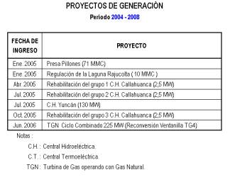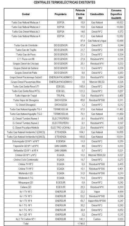 c) Se considera en el plan de obras el compromiso entre el Gobierno Peruano y la empresa ETEVENSA para el aprovechamiento del gas natural de Camisea a través de la central termoeléctrica de Ventanilla (324 MW ciclo simple) en setiembre de 2004 y la conversión de una de sus unidades a ciclo combinado (225 MW) en junio de 2006. Dicho plan ha sido determinado tomando en cuenta los criterios, para la incorporación de nuevas plantas, que impone el Decreto Supremo N° 010-2004-EM. Es decir, que solamente se consideran factibles de entrar en operación a aquellos proyectos de generación cuyos títulos no se encuentren en causal de caducidad o cancelación.