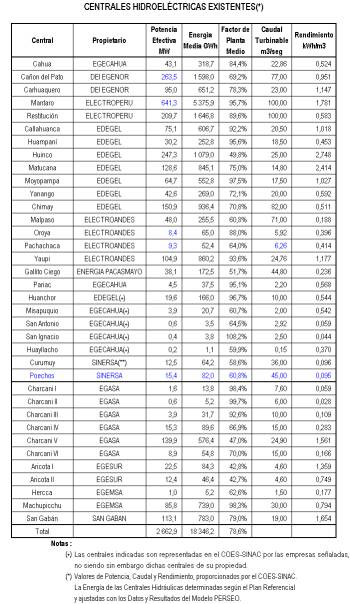 Dichos valores resultan del análisis de la información presentada por el COES-SINAC tanto en su ESTUDIO como en la ABSOLUCIÓN de las observaciones del OSINERG (ver Anexo C).