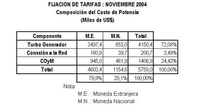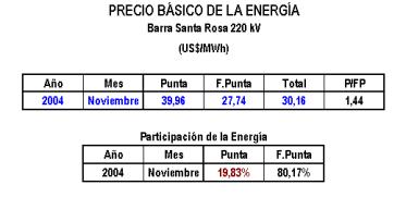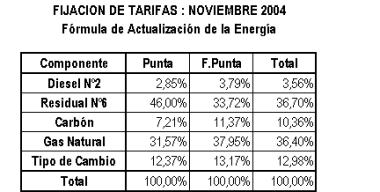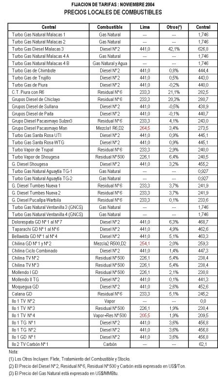 n) En los cálculos de las Tarifas en Barra del presente informe, los valores para los costos de combustibles, corresponden al 31 de agosto de 2004. Estos valores serán corregidos para la publicación de las Tarifas en Barra según lo establecido en el Artículo 50° de la Ley de Concesiones Eléctricas.