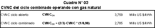 d) Como Costo Variable No Combustible de las unidades de la central termoeléctrica de Ventanilla se utilizan los valores de 4,059 US$/MWh para el caso en que operen con gas natural en ciclo simple y de 2,785 US$/MWh para el caso en que operen con gas natural en ciclo combinado.