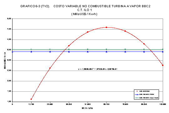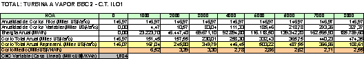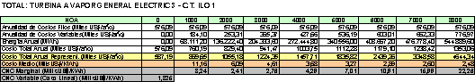 De igual modo, respecto del Costo Variable No Combustible de la central termoeléctrica de Ilo1 se utilizan los valores de 1,934 US$/MWh para la unidad IloTV2, de 1,325 US$/MWh para la unidad IloTV3 y de 1,231 US$/MWh para la unidad IloTV3.