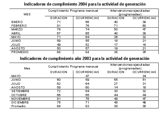disponibilidad de las unidades de generación de la empresa.